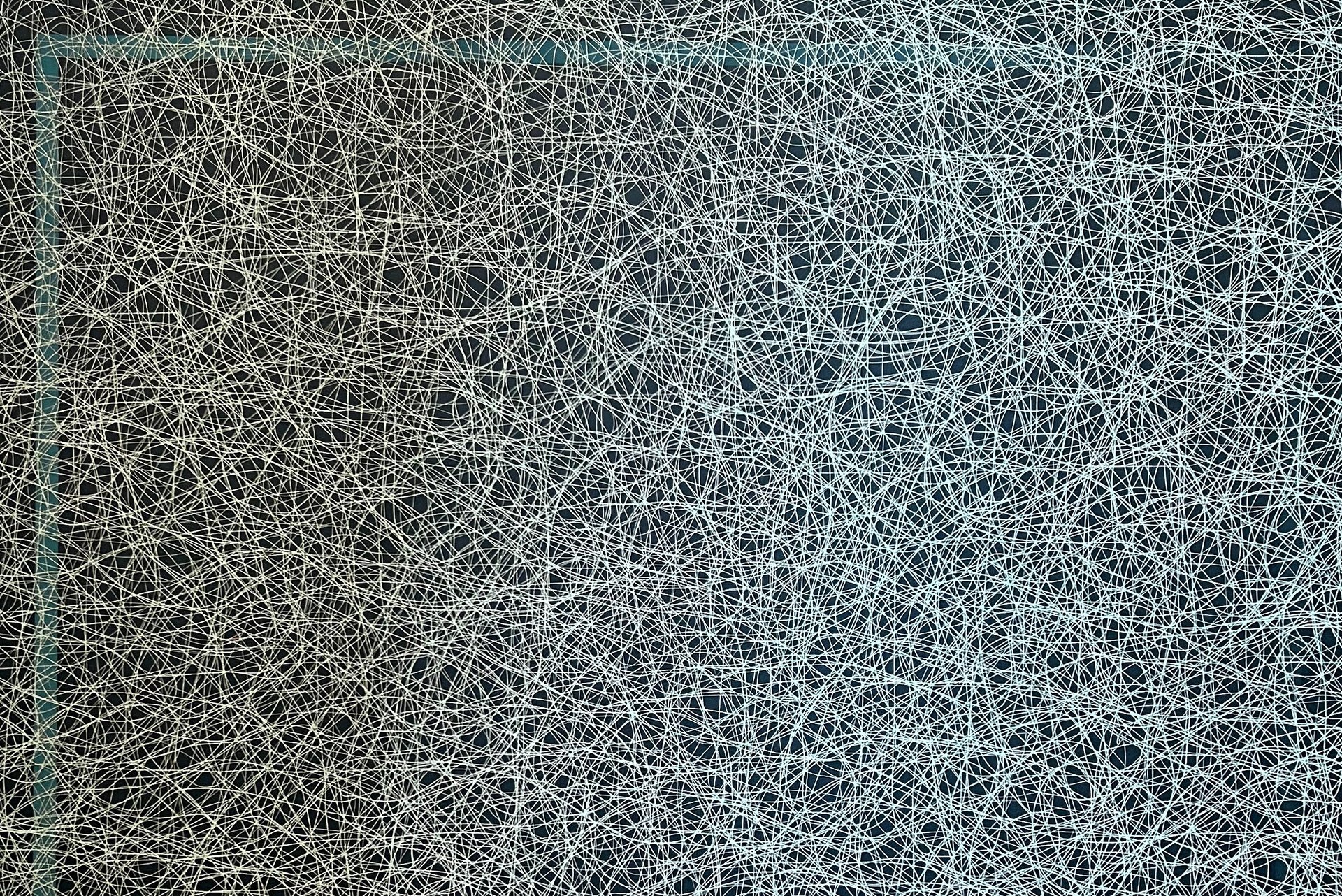 Keith Elliott (b. 1949, Manchester) is a British contemporary artist whose work explores the relationship between line, colour, and time through an innovative technique using silk thread and chromatic gradations.
